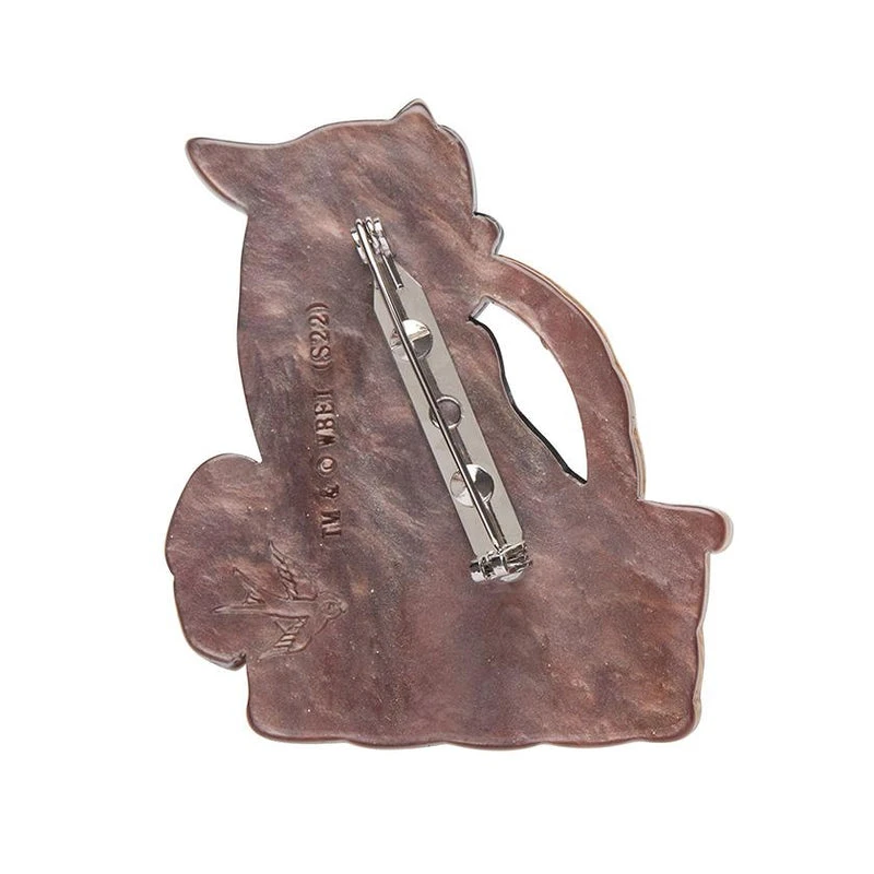 An assortment of textured resins bring this Toto and basket brooch to life. With hand-painted details, he is the perfect partner for a trip to another world.