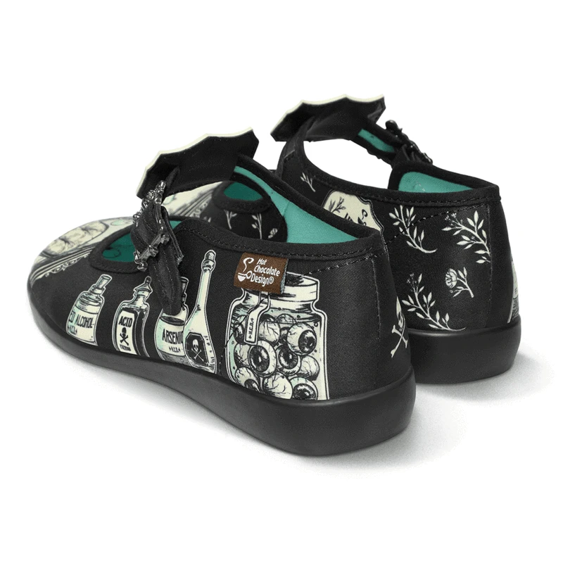 The Drugstore flats are to die for! These gorgeous flats feature a life and death inspired design on a black/grey background.