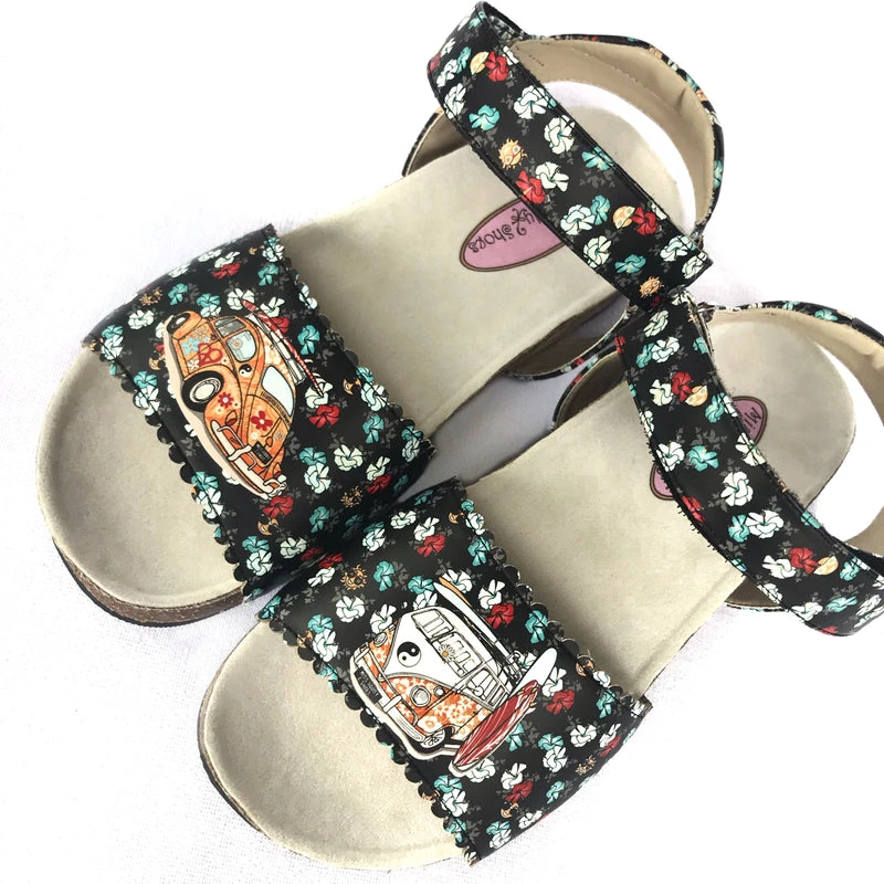 Miss Love Bug sandal was inspired by Queenslands Surfers Paradise summer vibe. Featuring mismatch VW original prints on the sandals which match!